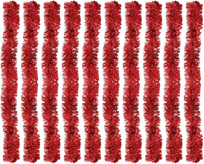 Kit 10 Festão Metalizado 7 Fitas 5cm X 2 Metros Decoração Natalina Enfeite Natal Festa (Vermelho)