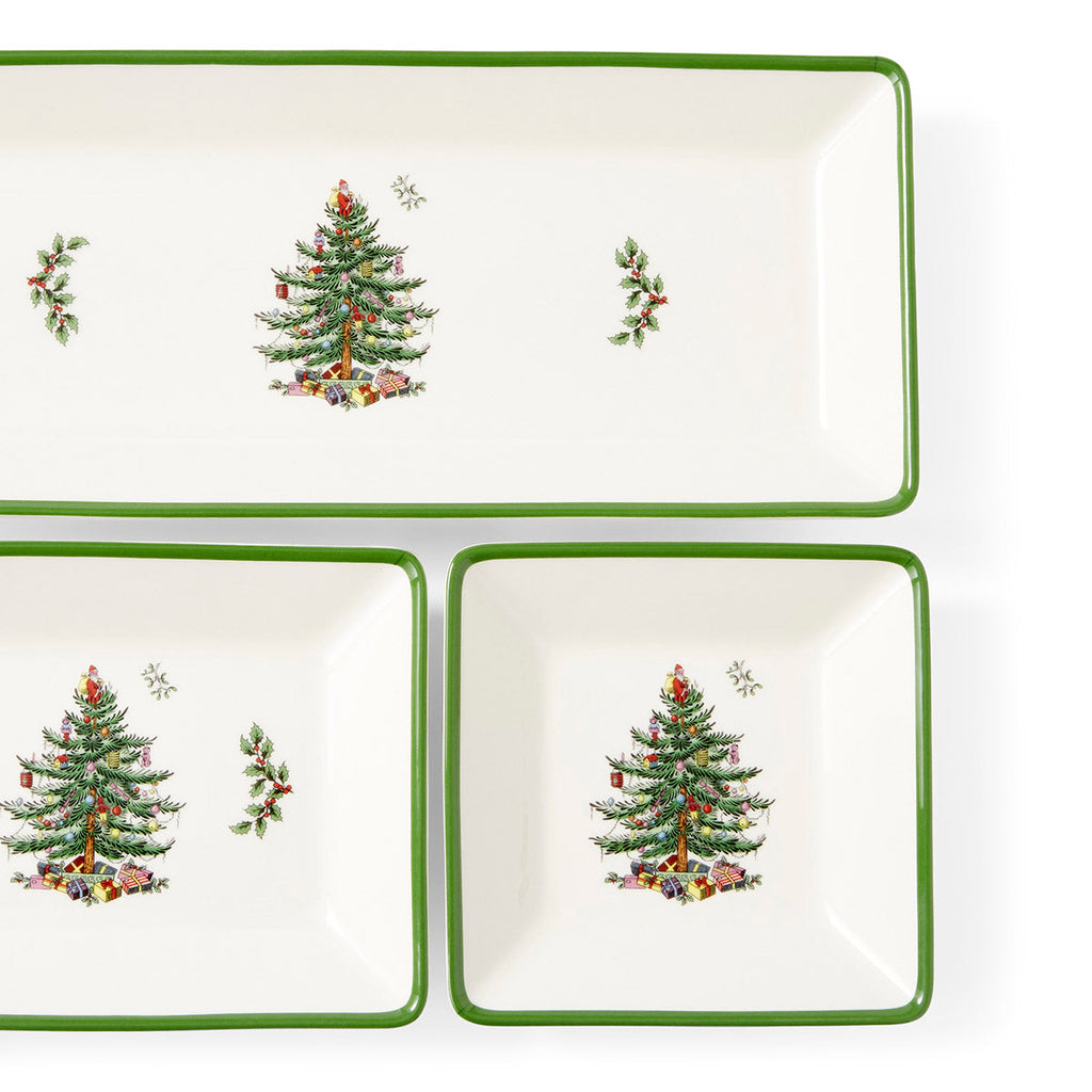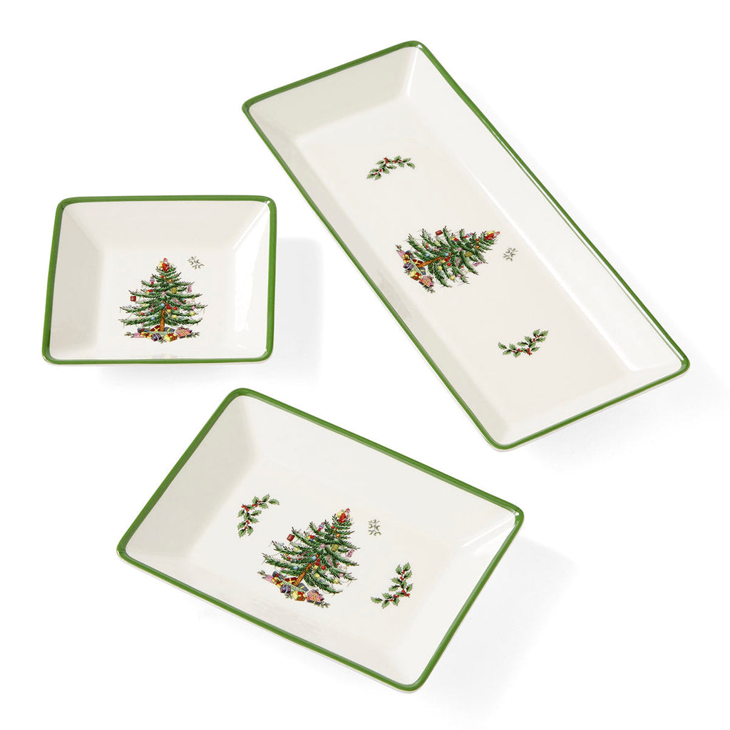 Dimensões: Bandeja Grande 33 cm × 14 cm × 3,2 cm , Bandeja Média 19 cm × 14 cm × 3,2 cm, Bandeja Pequena Quadrada 14 cm × 14 cm × 3,2 cm
