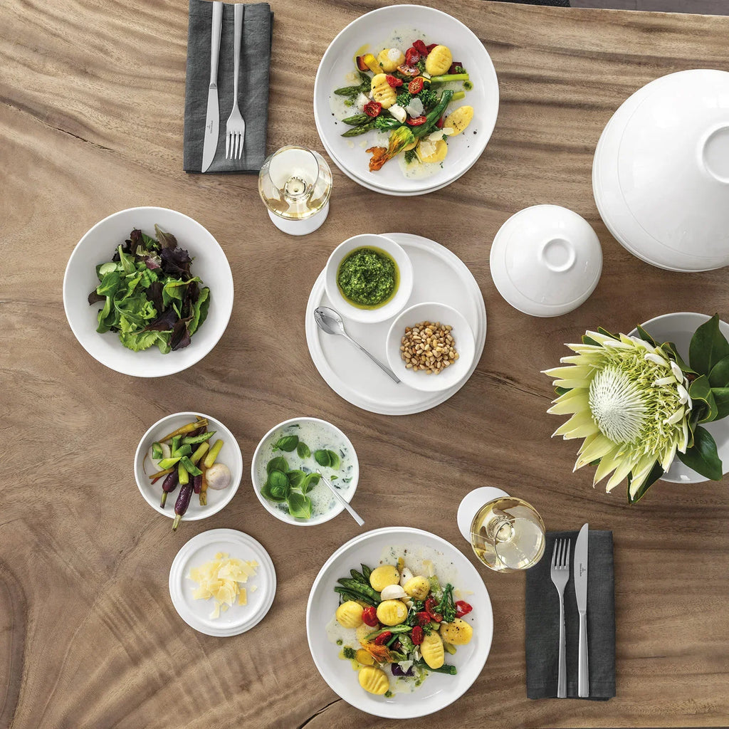 A esfera La Boule é um conjunto de artigos de porcelana de qualidade premium concebidos para duas pessoas. Dois pratos planos, dois pratos universais, duas saladeiras e uma travessa se conectam magicamente e aparecem na forma de uma bola.