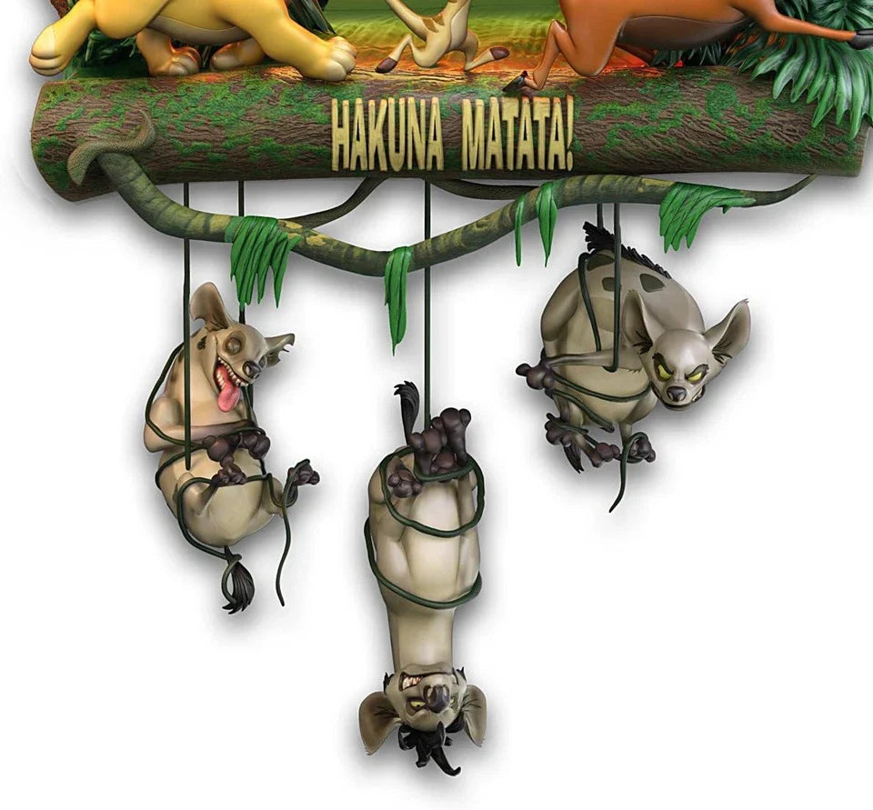 Ao acionar, o relógio reproduz a canção “Hakuna Matata”, trazendo toda a energia e alegria desse clássico inesquecível.