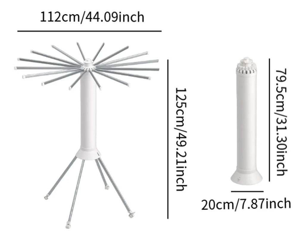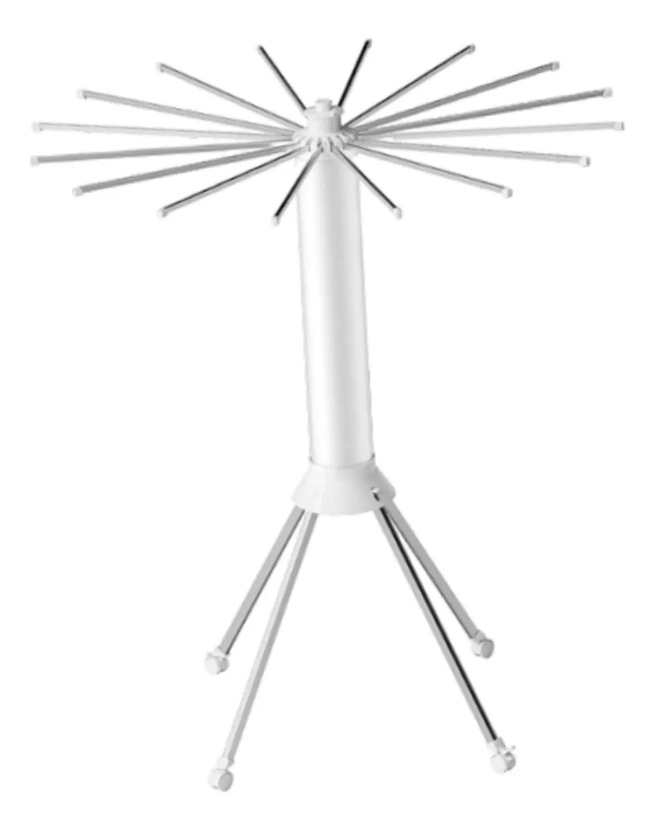 1 ×Varal Portatil Dobrável – estrutura compacta porém robusta com 16 varas de secagem, base em aço e PVC, pés reforçados.