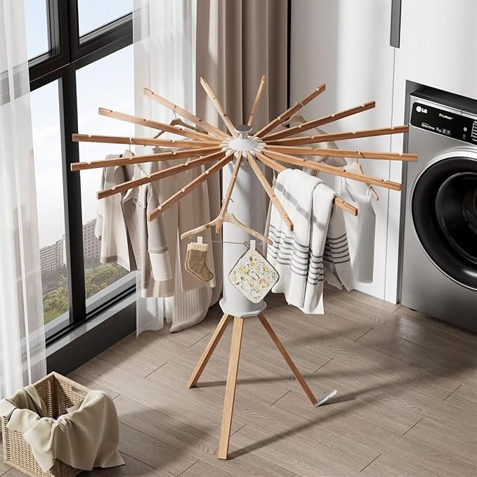 Fácil de mover e guardar: compacto, dobrável e perfeito para apartamentos ou lavanderias com pouco espaço.